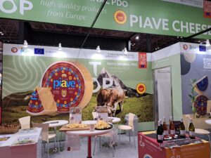 特に注目を集めたのは、3月13日12:00~12:40、東ホール3内のオーガナイザーズオフィスで開催された限定マスタークラス「ピアーヴェチーズ:DOP認証ヨーロッパの卓越性を巡る旅」でした。このセッションでは、ピアーヴェDOPチーズの特徴や豊かな伝統、そしてヨーロッパの優れた製品の象徴としての意義について、参加者が深く知る貴重な体験が提供されました。